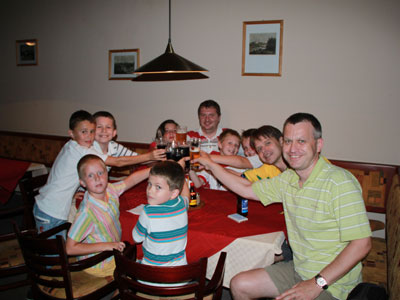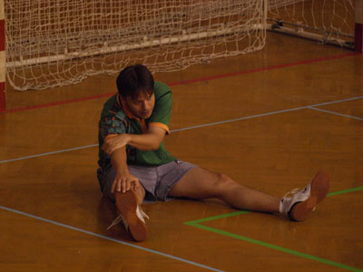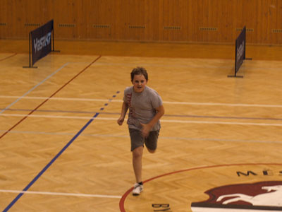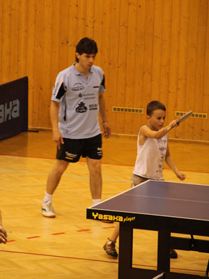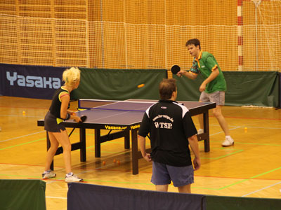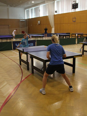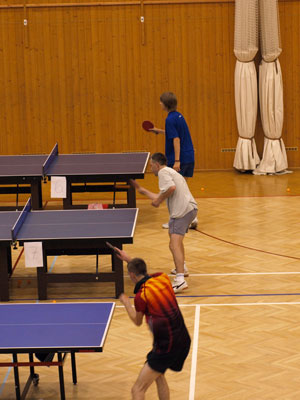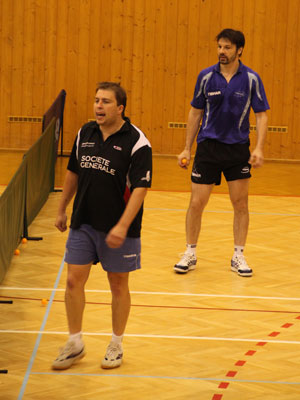 V bare po večeri po prvom tréningu Tréneri Karel Karásek a Marek Klásek Tréner Tomáš Janásek a Tomáš Robko Robo (v strede)Tibor (vpravo) so Stáňou (České Budějovice) Rozvička Tibor Robo Samo pri behoch Riško Robko s Deborah (Švajčiarsko) Po futbale s domácimi pingpongistami